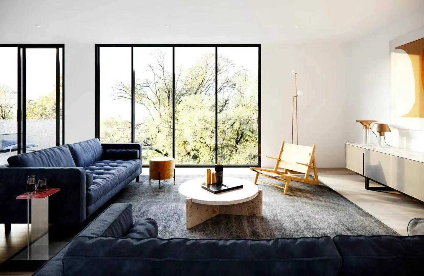Flooded with natural light and adorned in a palette of texturally rich finishes, the aura here is one of comfort and retreat.