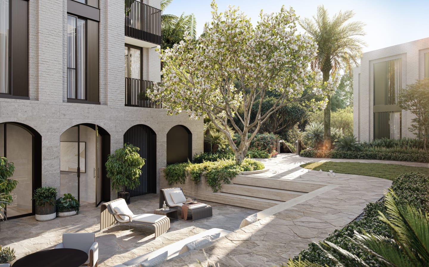 Kew presents Palm House, a boutique new apartment development in the green heart of Bellevue Hill. This masterfully curated project offers just 16 highly individual residences, including whole-floor homes and penthouses, set across two discreetly layered buildings. With a choice of two, three and four-bedroom layouts, each home has been orchestrated to balance grandeur, intimacy, and generosity of living. The architecture, gardens, and interiors have been composed in harmony to reflect the refined lifestyle of Sydney’s Eastern Suburbs. Stylish interiors with high-end finishes and designer details. The residences at Kew Palm House have been designed to maximise natural light and views while maintaining privacy. Living and entertaining spaces extend seamlessly onto terrace-style balconies or gardens, creating an easy flow between indoor and outdoor living. Kitchens feature expanses of travertine paired with thoughtful and ergonomic layouts, complemented by luxury appliances from V-ZUG. Principal suites and bedrooms provide comfort and calm, while bathrooms deliver hotel-like indulgence with refined finishes. Every detail has been shaped to create spaces of enduring quality. Exclusive resident amenities including pool, gardens, fully functioning kitchen. Residents of Kew Palm House enjoy access to thoughtfully integrated shared spaces designed for relaxation, wellbeing, and community. Landscaped gardens are woven with secluded, tree-lined paths that lead to a pool and pool house, complete with a kitchen and entertaining areas. Prestigious Bellevue Hill location near schools, shops, cafés, and coastal walks. Set within the green heart of Sydney’s Eastern Suburbs, Kew Palm House enjoys an enviable position bordered by the Royal Sydney Golf Course, the calm waters of Rose Bay, and coastal walks such as the Hermitage Foreshore. Residents are moments from Rose Bay Esplanade, Double Bay, and the vibrant retail and dining precincts of Bondi Junction. The area is also home to prestigious schools including Cranbrook School, making it a sought-after address for families. From village cafés and boutique stores to fine dining and international brands, Bellevue Hill offers a wealth of everyday choice, all within 15 minutes of the Sydney CBD. Renowned developer and award-winning design team behind Kew Palm House. Kew Palm House is a collaboration between some of Australia’s most respected names in design and development. Developer Kew is renowned for delivering luxury residences across Bellevue Hill, Bondi, and Rose Bay. Architecture is by Woods Bagot, who have reinterpreted the classic townhome form with fine brickwork and subtle detailing. Landscape design by Dangar Barin Smith creates tranquil, nature-rich surroundings punctuated by palm trees and scented blooms. Each partner has contributed their expertise to realise Kew’s vision for sophisticated, enduring living. Enquire today to secure your new home in Bellevue Hill. Kew Palm House is now selling, with private appointments available by request. Interested buyers are invited to register for a personal appointment at the display gallery in Rose Bay to learn more about life at Palm House, Bellevue Hill.