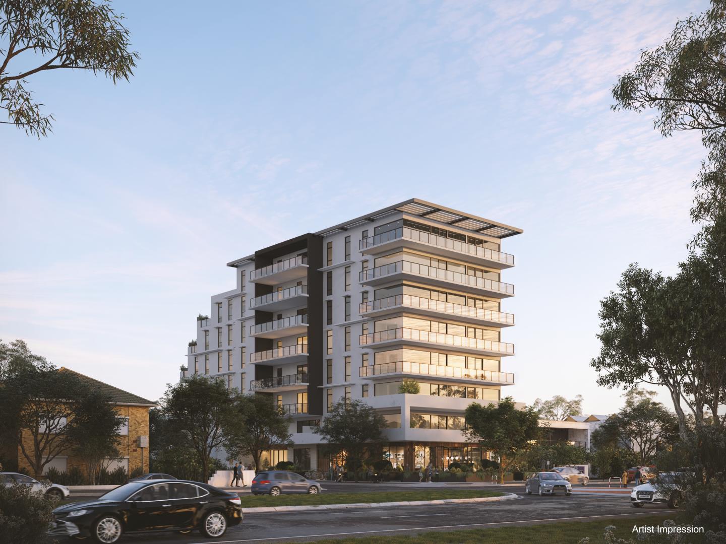 Construction of an 8 storey mixed-use building. 24 units and 1 shop of 95.7 sq m on ground level. Unit distribution per floor: Levels 1, 2, 3, 4 & 5: 4 units each. Levels 6 & 7: 2 units each. Unit mix: 15 x 1 bedroom units (2 of which will be DDA compliant). 7 x 2 bedroom units. 2 x 3 bedroom units. Building construction features: New steel frame. Concrete. Precast concrete. Metal cladding. Car parking. Landscaping. Associated siteworks & external works.