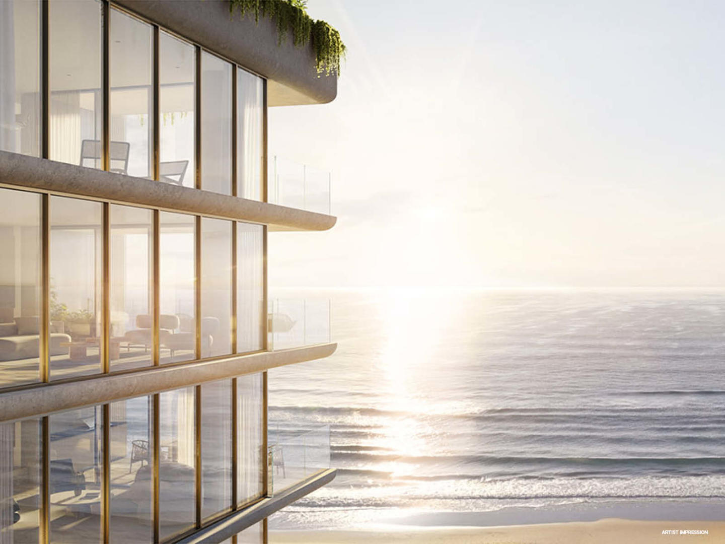 Positioned along the iconic Burleigh Heads Esplanade, ONE Burleigh presents a rare collection of just 17 full-floor beachfront residences, designed for those seeking uncompromising luxury, privacy and scale. Each residence occupies an entire floor, offering approximately 381sqm of expansive indoor and outdoor living with uninterrupted ocean views. Full-height glazing captures natural light and frames the coastline, creating a seamless connection between indoor spaces and the expansive ocean views. Generous floorplans include four bedrooms, three bathrooms, two powder rooms, a private office and a dedicated media room with a bar, delivering the proportions of a true coastal home. Interiors feature a refined palette of travertine stone, light oak joinery, champagne bronze detailing and herringbone timber flooring, while the gourmet kitchen is appointed with premium Gaggenau appliances, integrated refrigeration and dual wine fridges. Residents enjoy access to a private wellness retreat, including a heated pool, mineral hot and cold plunge pools, hot stone sauna, spa enclaves, yoga deck and relaxation garden. Positioned directly on Burleigh Esplanade, ONE Burleigh places residents moments from Burleigh Headland, world-class restaurants, boutique retail and the vibrant coastal lifestyle that makes this location one of Australia’s most desirable beachfront addresses. For further information or to arrange a private sales appointment, contact the Place Projects sales team.