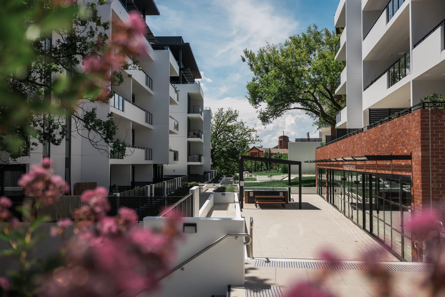 Less than 3km north of the Canberra's CBD, The Sullivan at Northbourne Village combines an imposing presence along Northbourne Avenue with the subtler delights of a charming suburban backdrop. This is city life at its best. With a light rail connection at the door, Canberra's CBD is just a few minutes away, while the bike path alongside Sullivan's Creek provides a healthy alternative commute. The bars, funky cafes and eating spots of Lyneham, Dickson, O'Connor and Braddon are just minutes away and there's a wide range of sporting facilities practically on your doorstep. At The Sullivan, a range of affordable and sustainable one, two and three-bedroom apartments deliver on style, efficiency and durability. From nine storeys along Northbourne Avenue, levels step down towards the west, opening up mountain views. The Sullivan has been designed to reduce environmental impact - and running costs. All apartments receive excellent natural light and ventilation, while higher-than-average ceiling heights increase the sense of airiness. Heating and cooling systems optimise efficiency and high energy-star rating appliances deliver on capability. Double-glazed windows provide excellent insulation and acoustic performance. Named for one of Canberra's treasured green spaces, The Sullivan provides its own landscaped areas to soothe the eyes and the soul. A residents-only garden with BBQ facilities will create a tranquil place to relax or catch up with neighbours.