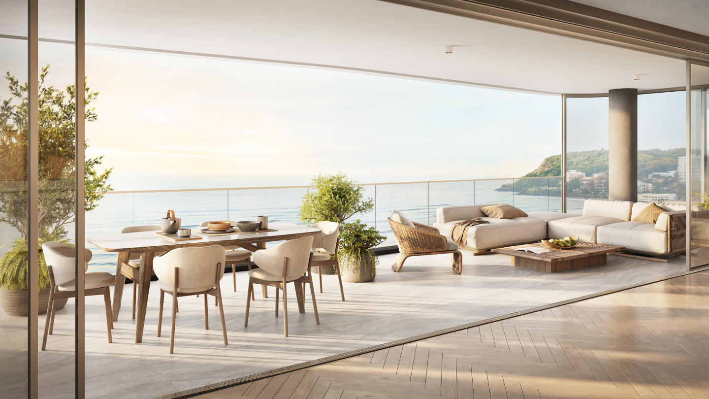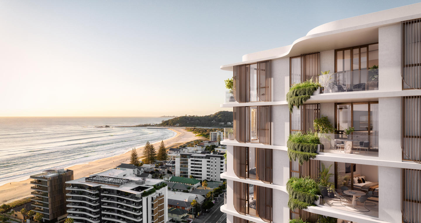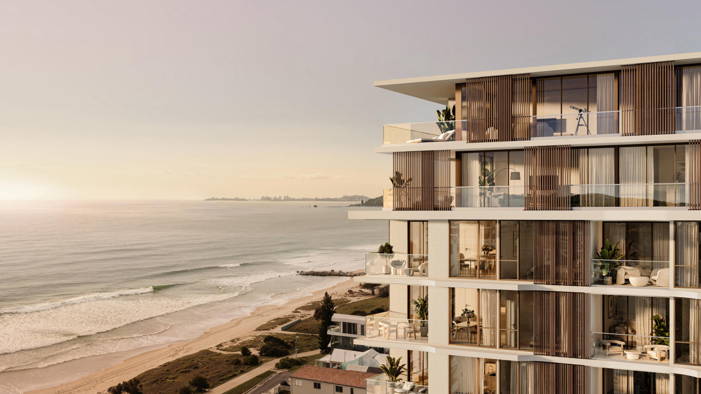 Bilinga House is a new apartment development located at 107–109 Golden Four Drive, Bilinga, Queensland. Comprising just 47 residences, this boutique project offers a choice of two- and three-bedroom apartments, with prices starting from $1.2255 million for two-bedroom residences and $2.005 million for three-bedroom residences. Positioned only 200 metres from the beach, it combines rare coastal proximity with considered design, providing a home that is both connected to the surrounding landscape and grounded in architectural quality. Interiors designed with natural materials and calming tones. Inside Bilinga House, Rothelowman’s architectural approach draws on the project’s location, allowing sunlight and sea breezes to fill each residence. The interiors feature natural materials and soft, neutral tones, creating a calm and inviting atmosphere. Every detail has been thoughtfully curated to enhance wellbeing, making each apartment feel both functional and restorative. Private onsite amenity for residents. Residents enjoy exclusive access to a range of onsite facilities designed to support both relaxation and an active lifestyle. These include a resort-style swimming pool, a gym, and a sauna. Professional onsite management ensures these spaces are maintained to a high standard, providing a secure and enjoyable environment. Coastal location with nearby lifestyle amenities. Bilinga House is set within the Southern Gold Coast, an area known for its quiet, unspoilt character and easy access to celebrated destinations. The Oceanway pathway is moments away, leading south to the surf breaks and boutique shopping of Coolangatta and Kirra, or north to Palm Beach and Burleigh’s dining and bar scenes. Gold Coast Airport is just three minutes from the development, offering domestic flights to Sydney, Melbourne, and Adelaide, as well as direct international links to New Zealand. Experienced project team behind Bilinga House. The development is led by Centa Property Group, whose portfolio spans retail, commercial, and residential projects across South-East Queensland. Architecture is by Rothelowman, with construction delivered by Greyburn Builders — a company established in 1987 with a track record of quality craftsmanship. Arrange a private appointment at the display suite. A display suite is located at 39 McLean Street, Coolangatta, and is open for private appointments. Here, visitors can learn more about the development, explore the design direction, and view the available apartment options. To arrange a time, submit an enquiry.