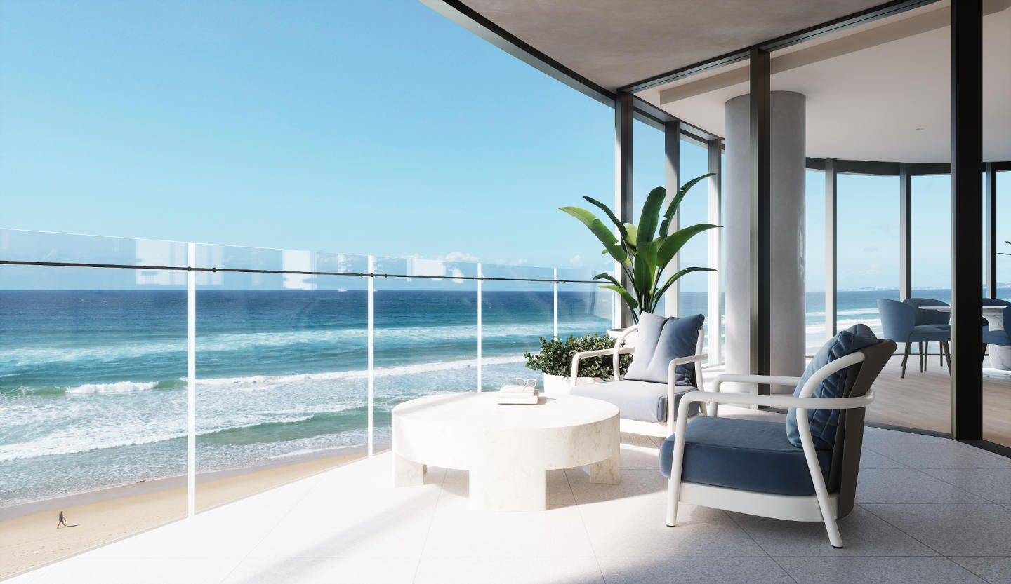 Positioned along the iconic Burleigh Heads Esplanade, ONE Burleigh presents a rare collection of just 17 full-floor beachfront residences, designed for those seeking uncompromising luxury, privacy and scale. Each residence occupies an entire floor, offering approximately 381sqm of expansive indoor and outdoor living with uninterrupted ocean views. Full-height glazing captures natural light and frames the coastline, creating a seamless connection between indoor spaces and the expansive ocean views. Generous floorplans include four bedrooms, three bathrooms, two powder rooms, a private office and a dedicated media room with a bar, delivering the proportions of a true coastal home. Interiors feature a refined palette of travertine stone, light oak joinery, champagne bronze detailing and herringbone timber flooring, while the gourmet kitchen is appointed with premium Gaggenau appliances, integrated refrigeration and dual wine fridges. Residents enjoy access to a private wellness retreat, including a heated pool, mineral hot and cold plunge pools, hot stone sauna, spa enclaves, yoga deck and relaxation garden. Positioned directly on Burleigh Esplanade, ONE Burleigh places residents moments from Burleigh Headland, world-class restaurants, boutique retail and the vibrant coastal lifestyle that makes this location one of Australia’s most desirable beachfront addresses. For further information or to arrange a private sales appointment, contact the Place Projects sales team.