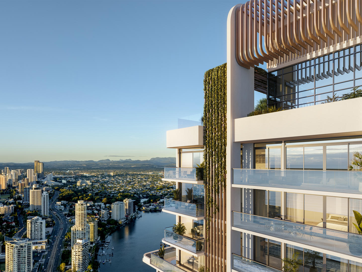 Rising above Surf Parade in Broadbeach, The Eveleigh is a refined expression of boutique coastal luxury, where architecture, lifestyle, and location exist in perfect harmony. Designed as a sculptural landmark, its elegant façade responds to the shifting coastal light, creating a dynamic interplay between form and environment. Within, residences are conceived as sanctuaries of calm spaces where natural light, soft materiality, and thoughtful design come together to create an atmosphere of understated luxury. Expansive glazing draws the horizon inward, framing uninterrupted ocean, city, and hinterland views, while interiors balance warmth and sophistication through curated finishes and timeless detailing. Positioned in the heart of Broadbeach, residents are immersed in one of the Gold Coast’s most vibrant yet refined precincts. From world-class dining and designer retail to pristine beaches and cultural destinations, everything is within effortless reach. Complemented by a suite of resort-style amenities designed for wellness, relaxation, and connection, The Eveleigh offers a lifestyle defined by balance - where luxury living meets the rhythm of the coast. The Eveleigh marks Hirsch & Faigen’s fourth Gold Coast development in five years, each preceding three projects have been fully sold prior to completion - a testament to our consistent delivery and market confidence. Only 4 residences per floor. Prime Broadbeach location, moments from Kurrawa Beach, Pacific Fair, and Oracle dining precinct. Architecturally designed by Rothelowman, delivering a sculptural and timeless coastal landmark. Premium kitchens featuring stone island benches, integrated joinery, and European appliances. Private resort-style amenities including a pool terrace, yoga garden, gymnasium, and sauna. Rooftop entertaining spaces with panoramic views, designed for dining and social connection. Podium-level wellness spaces immersed in subtropical landscaping for relaxation and retreat. Expansive residences with full-height glazing capturing ocean views.