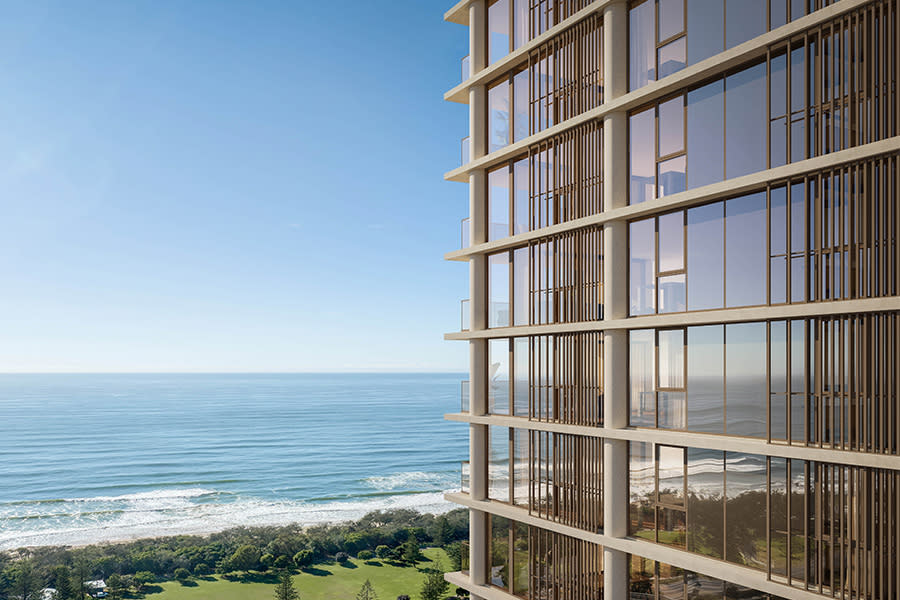Elle on Jefferson presents a distinctive architectural presence that is both elevated and grounded in its Palm Beach setting. This carefully designed development has been brought to life by Gordon Corp in collaboration with the Mathieson family, the same team behind The Mantaray Residences & Marina, Australia’s first purpose-built superyacht marina and luxury residential precinct. Elle on Jefferson continues their shared vision, offering residences that celebrate coastal living with enduring value. Each home is designed to connect to its surroundings while providing a sense of privacy and retreat. Situated just footsteps from the shoreline, apartments enjoy uninterrupted views stretching from sunrise to sunset. Interiors shaped by natural beauty and refined craftsmanship. Each residence has been designed with material honesty and quiet sophistication. Kitchens feature fluted islands in natural stone, complemented by integrated European appliances, generous storage, and discreet butler’s pantries. Select residences include seamlessly built-in wine fridges. The interiors are offered in two curated schemes. Cream honed quartzite with caramel and taupe veining softens the palette, while rose-veined marble with blush and sand tones introduces warmth. Timber oak flooring runs throughout, creating a gentle flow between spaces. Soft champagne metal accents in tapware, handles, and trims bring a refined edge. Master suites offer generous scale and separation from living zones, with curated finishes that encourage rest and retreat. Ensuites are finished with fluted detailing, full-height tiles, and premium fixtures, designed to bring a spa-like quality to everyday rituals. Wellness spaces with a lap pool, plunge pools and holistic gym. Elle incorporates an extensive range of wellness amenities designed to support balance and renewal. Residents can enjoy a 15-metre lap pool, hot and cold plunge pools, and private cabanas. A sauna and steam rooms provide spaces for restoration, while a holistic gymnasium with top-end equipment accommodates cardio, weights, yoga, and pilates. These shared spaces extend the experience of home, ensuring that health and wellbeing remain part of everyday life. Connected to Palm Beach cafés, dining, schools and coastal trails. Elle’s location connects residents to the best of Palm Beach. Just 50 metres from the sand and 100 metres from cafés, bars, and dining, it offers unmatched convenience. The development is within walking distance of Tallebudgera Creek, Currumbin Alley, and coastal trails, as well as the Palm Beach Surf Life Saving Club and beachside parks. Connectivity is further enhanced by easy access to the M1 and a 15-minute drive to Gold Coast Airport. Nearby dining includes Balboa Italian, The Collective Palm Beach, Madame V, Costa Taco, and Scott’s Luncheonette & Bar. Local cafés such as Barefoot Barista, Paris Brest French Bakery, and Sisterhood provide daily essentials. Schools in the area include Palm Beach–Currumbin State High School and Palm Beach State School, while shopping is available at Coles Palm Beach and The Pines Shopping Centre in Elanora. Life connected to Palm Beach cafés, coastline and community. Elle is the result of a collaboration between leading industry names. Developer Gordon Corp partners with the Mathieson family, building on their shared ethos of integrity and quality. Architecture and interior design are guided by Inarc, known for authentic, enduring environments, alongside Cottee Parker, a nationally recognised architecture firm with expertise in luxury residential and mixed-use developments. Elle on Jefferson is more than a place to live; it is an invitation to embrace a lifestyle rooted in design, enriched by its Palm Beach location, and supported by thoughtful amenity. Enquire to book a private appointment.