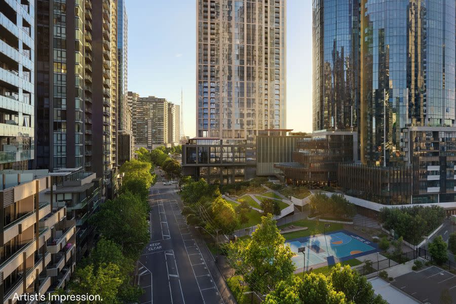 Rising 67 storeys at 7 Hoff Boulevard, AURA presents 673 refined residences blending Japanese design principles with Australia's natural beauty. Designed by Cox Architecture and DKO, the tower delivers calm, light-filled homes with balconies and expansive views. AURA's vertical wellness ecosystem, layered gardens, social clubs and retail activation redefine urban living, all seamlessly connected to Melbourne Square's parks, amenities and vibrant community. AURA, the next stage of Melbourne Square, offers a comprehensive amenity suite designed to support wellness, balance and connection. The AURA club on level 7 features an indoor pool, cold plunge, spa, sauna and steam room, alonside a fully equipped gym, Reformer Pilates studio and yoga room. Residents can unwind in the library, music and games rooms, work-from-home zones and open-air terrace. The Japanese-inspired AURA gardens feature outdoor dining with BBQ, lounge, and fire pit, including a tea house pavilion for quiet contemplation or a place to entertain friends and family. Social spaces continue at the Meridian Club on levesl 49 & 50 with an elegant lounge bar, conservatory and private dining rooms. Crowning AURA, the exclusive Cumulus Club spans levels 66 and 67 with lounges, private dining, premium wellness spaces and city views. Cox Architecture has designed a building embodying a sleek, rectangular grid aesthetic that meticulously fuses inspiration and design cues taken from New York’s timeless high-rises and Tokyo’s skyline. The interior designer, DKO, has created unique apartments designed to embrace Japanese principles of calm, clarity and simplicity with natural materials and layered spaces. The majority of Aura residences will also include balconies, increasing fresh air and outdoor space access. These balconies will boast incredible views across Melbourne’s CBD, Kennedy Park, Docklands, the Royal Botanic Gardens and the Arts Precinct. The building’s residences will be complemented by approximately 1,600 sqm of retail space across 5 – 8 tenancies on the ground floor and level one. Life at AURA is defined by balance, convenience and elevated everyday moments. Residents of Melbourne Square are surrounded by expansive greenery at Kennedy Park, offering calm retreats in the heart of Southbank, while a full-line Woolworths ensures daily essentials are always close at hand. Families benefit from premium early learning at Nido Childcare, complemented by a vibrant mix of cafés, restaurants and specialty retail along Hoff Boulevard. Just moments away, the CBD, Arts Precinct and Royal Botanic Gardens offer culture, dining and entertainment. Above it all, AURA residents enjoy million-dollar views over Melbourne’s skyline, gardens and bayside surrounds.