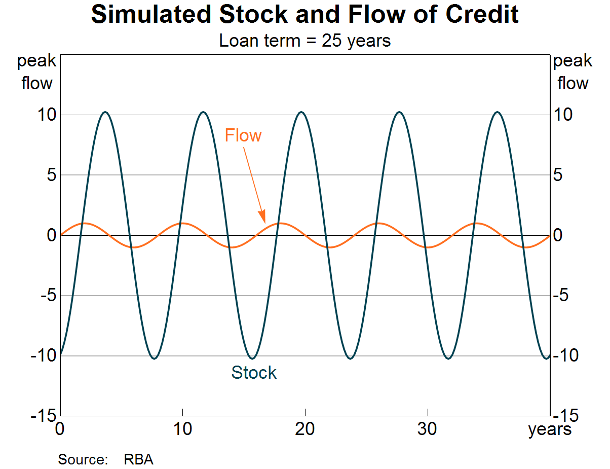 As I have emphasised on other occasions (Ellis 2014), many of the relationships important to financial stability depend on the balance of demand for and supply of a stock quantity that evolves only slowly, like the stocks of different kinds of property.