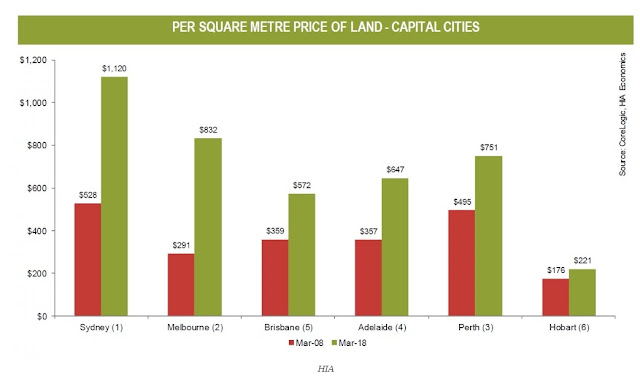 Indeed, on a price per square metre Sydney's land price was more than 8 per cent higher than a year earlier.