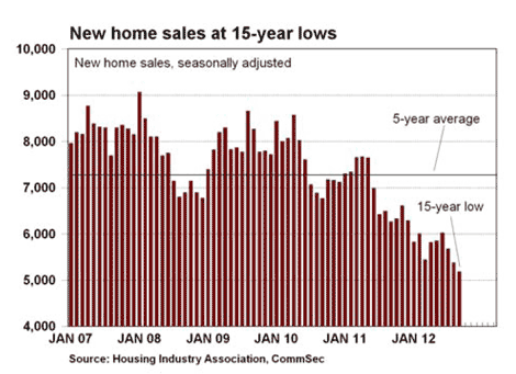 HIA chief economist Dr Harley Dale says the persistent weakness in new home sales in 2012 “reflects another factor conspicuous in its persistence this year – a dire lack of confidence towards housing”.