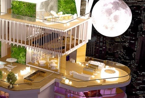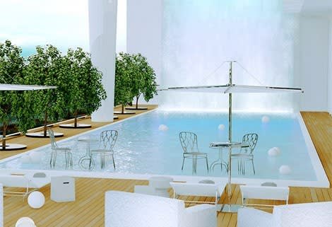 The top levels of the 56-floor tower will have an amenity deck designed by "Yoo inspired by Starck" and called the Cielo, which has a dining room, library, a movie room and fabulous pool.