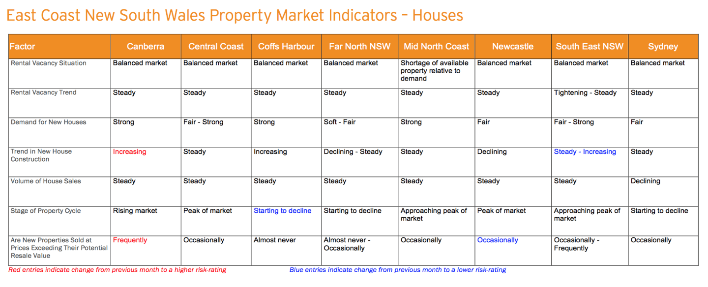 HTW state east coast NSW is largely holding a steady trend in rental vacancy and the volume of house sales, but house sale volumes are beginning their fall in Sydney.