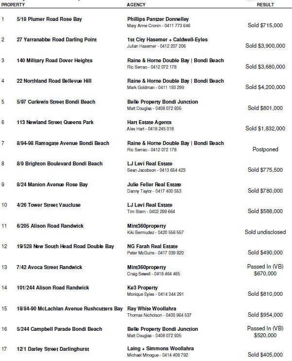 Dollar wise, the property selling the most over reserve was 140 Military Road Dover Heights. The home sold for $3.68 million which was $380,000 above the written reserve.