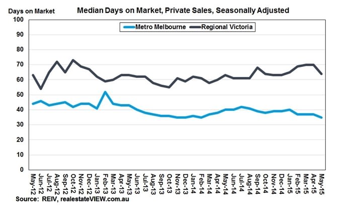 The median number of days on market in the month of May 2015 decreased to 35 days from a revised 37 days in the previous month, according to the latest REIV data.
