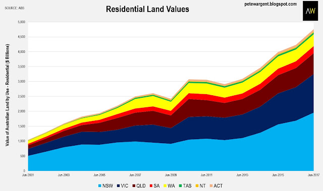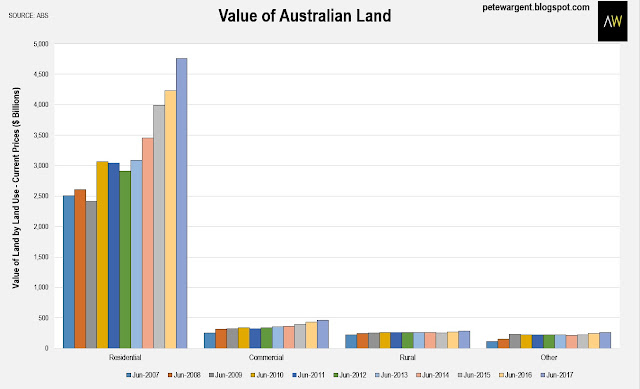 And, at just under $4.8 trillion, about 83% of that dollar value related to land zoned for residential use (up from just 63% in 1989, when the data series commences).