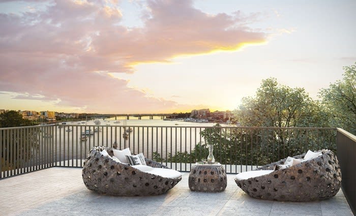 This neighbourhood development, nestled on 150 metres of waterfrontage on the banks of the Parramatta River, looks out to Sydney Harbour capturing views north to Spectacle Island and west to the Iron Cove Bridge.