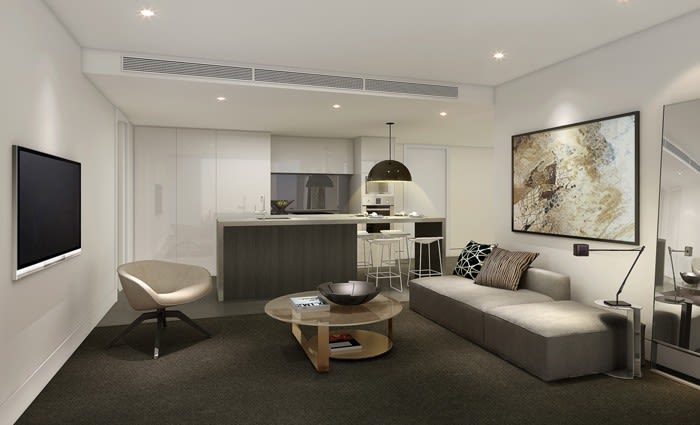 "They have been designed for the end user, featuring hand-selected fittings and finishes including wool blend carpet, fully vitrified floor tiles, stone benchtops with waterfall ends and feature lighting, along with high quality tapware, joinery and integrated fridge and dishwasher."