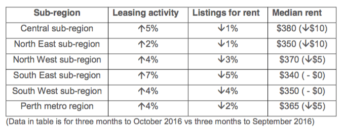 Leasing activity in the Perth metro area is up four percent in the three months to October compared to the three months to September according to REIWA.