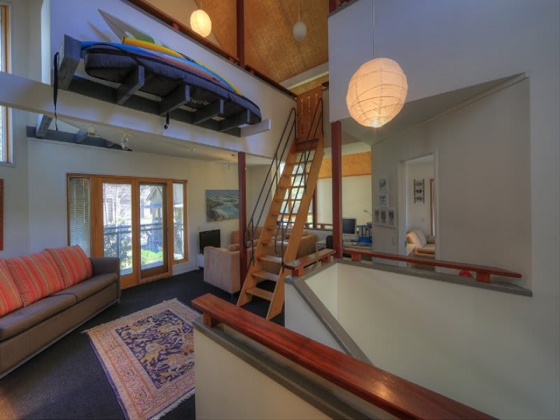 It’s in the Woodridge estate, which is right in the middle of Thredbo, and the home is known as Milkwood. With two-bedrooms, it’s tri-level and includes a main bedroom with built-ins, a loft space, two living areas, two-bathrooms, a drying room, two open car spaces and a fireplace.