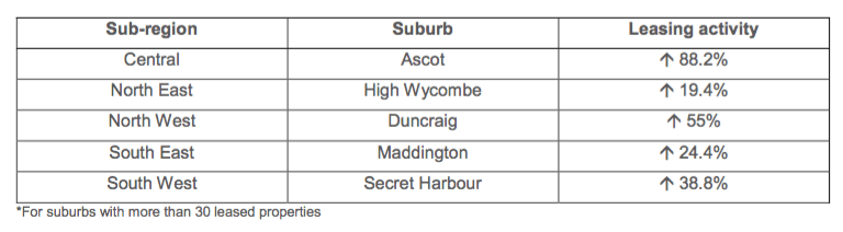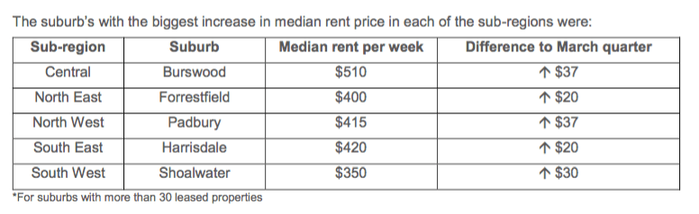 The rental property market Perth’s north east sub-region recorded a 4.7 percent increase in leasing activity in the June 2016 quarter and the south west sub-region an increase of 0.2 percent.