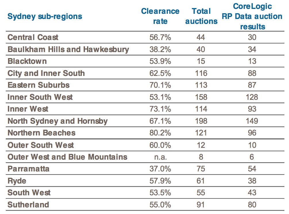 North Sydney and Hornsby held the most auctions than any other Sydney region for the week ending 8 November with a total of 198 total auctions and a preliminary clearance rate of 67.1% according to CoreLogic RP Data.