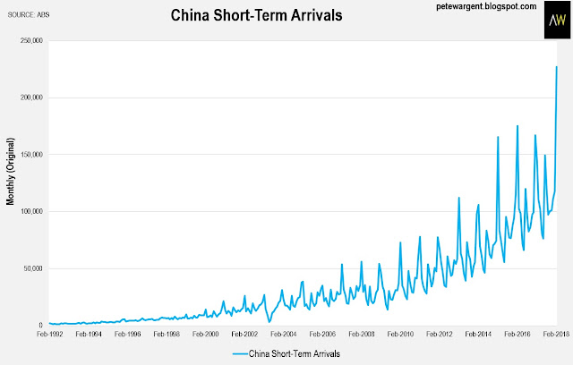 With 1.4 million short-term visitors over the year to February it's no surprise that China grabs the tourism headlines, though there were also record arrivals from other countries, including India at 311,500.