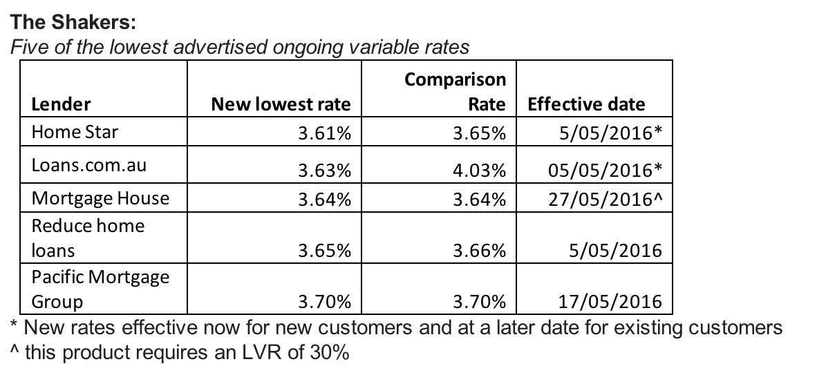 Ratecity.com.au has provided five of the lowest advertised ongoing variable rates as at May 9.