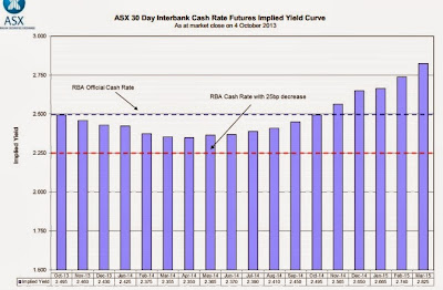 Unfortunately, with mining investment set to decline through 2014, at this stage, futures markets don't yet imply the Reserve Bank being in a position to implement an interest rate hike for quite some time to come yet - perhaps not even until early 2015.