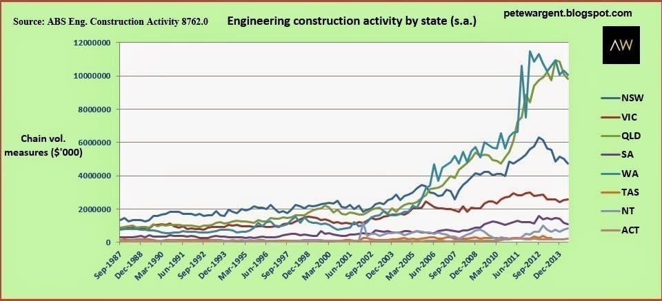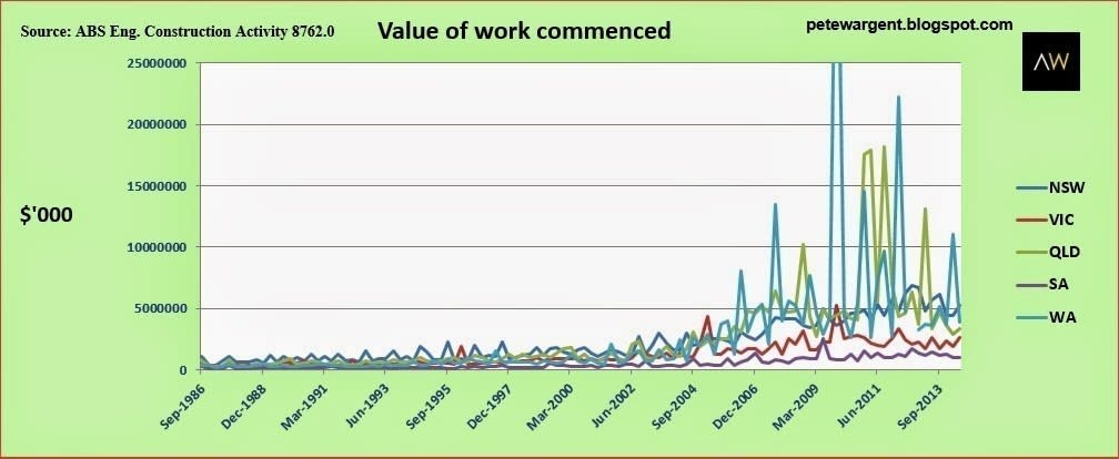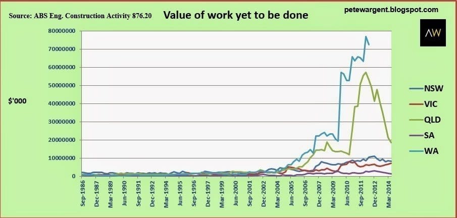 In terms of the construction activity by state, it was the mining states which benefited most from the boom, so it will be the same states which feel most of the pain as the construction boom unwinds.