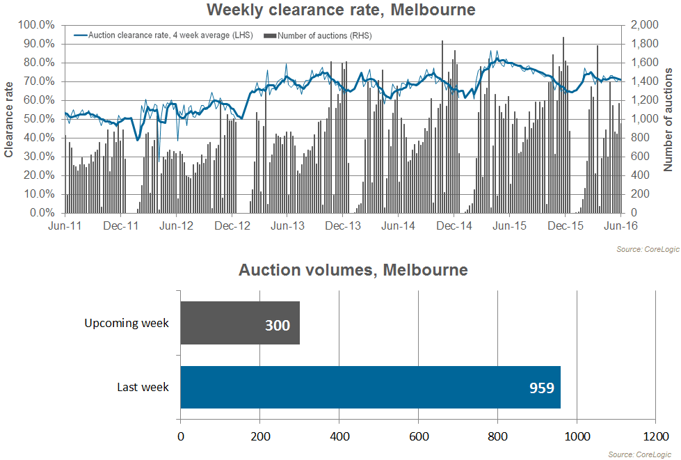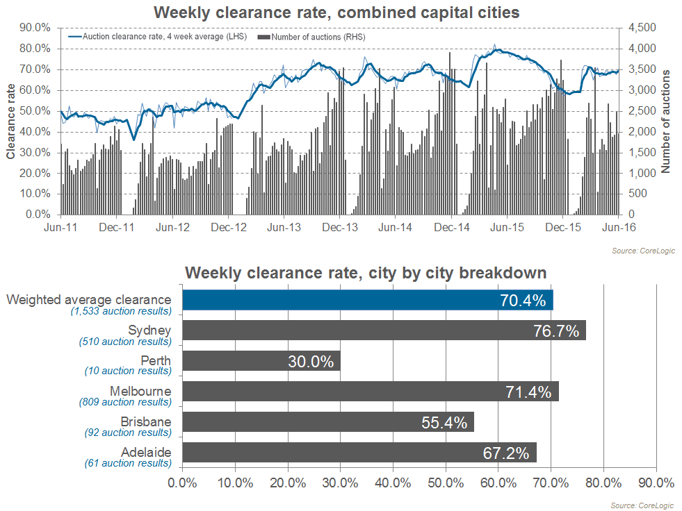 Preliminary results show that 70.4 percent of capital city auctions held this week were successful, rising from a final result of 67.7 percent last week. One year ago, across the lower number of auctions, 78.5 percent sold. Melbourne and Sydney, the two largest auction markets have maintained strength this week, while across the remaining, significantly smaller auction markets, results have been more varied.
