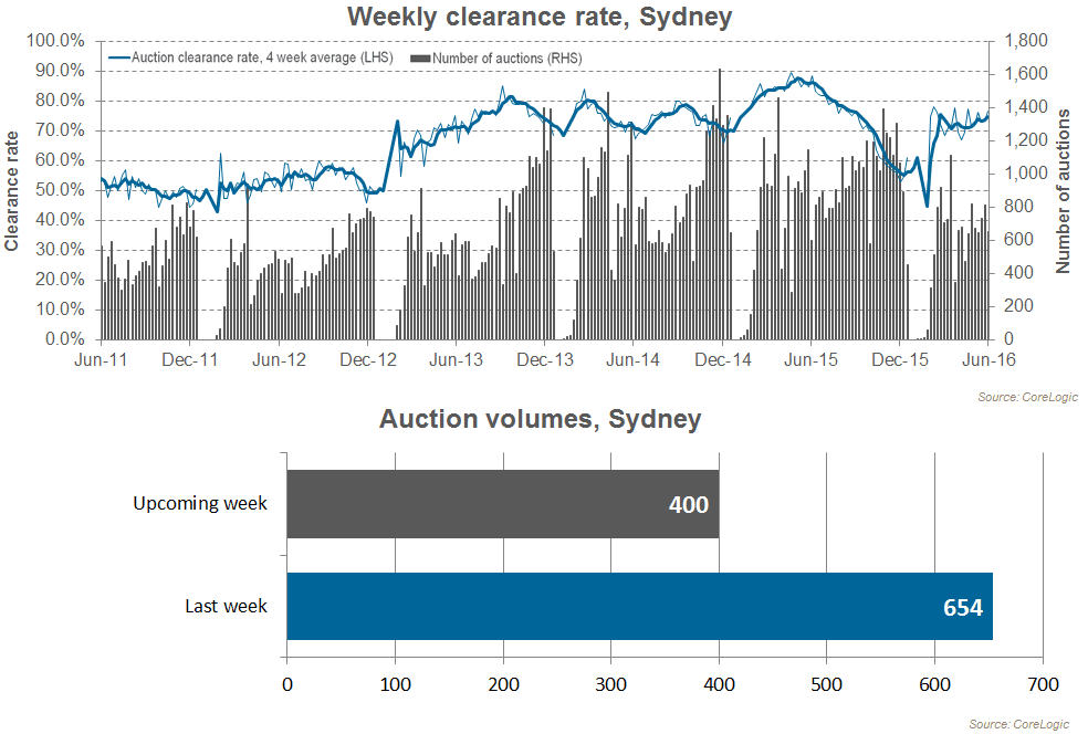 Sydney’s clearance rate rose over the week from 73.2 percent last week to 76.7 percent. The number of auctions held across the city this week was lower than last week, at 654, compared to 811. One year ago 603 Sydney auctions were held with 88.7 percent clearing. So far this year, Sydney’s clearance rate has remained relatively robust, after dipping to as low as 52.9 percent at the end of last year. However, results across the city are substantially lower than they were at the same time last year, and the volume of auctions held over the year to date is around 20 percent lower. This week, the City and Inner South region had the strongest preliminary clearance result across the city (85.7 percent), followed by Ryde at 85 percent and Eastern Suburbs at 84.9 percent.