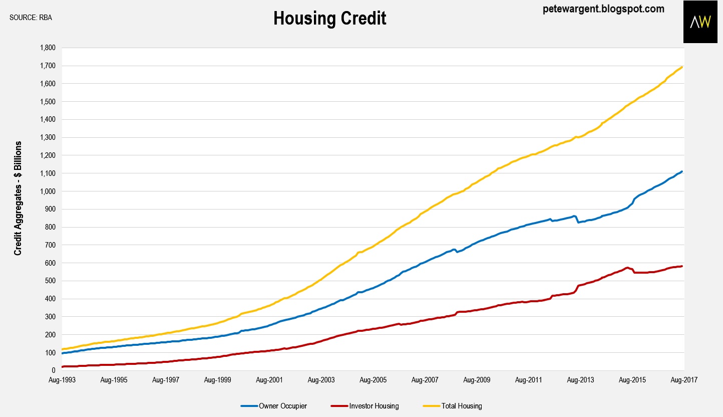 Total housing credit is now approaching $1.7 trillion, with a substantial volume of loans being switched from investment to owner-occupier (no less than $58 billion since July 2015).