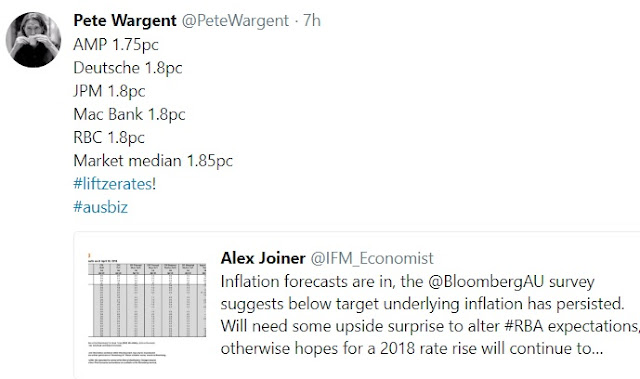 This is clearly going to be a vital data series because it shows whether the Reserve Bank of Australia (RBA) is on target to get inflation back up to its mandated target.