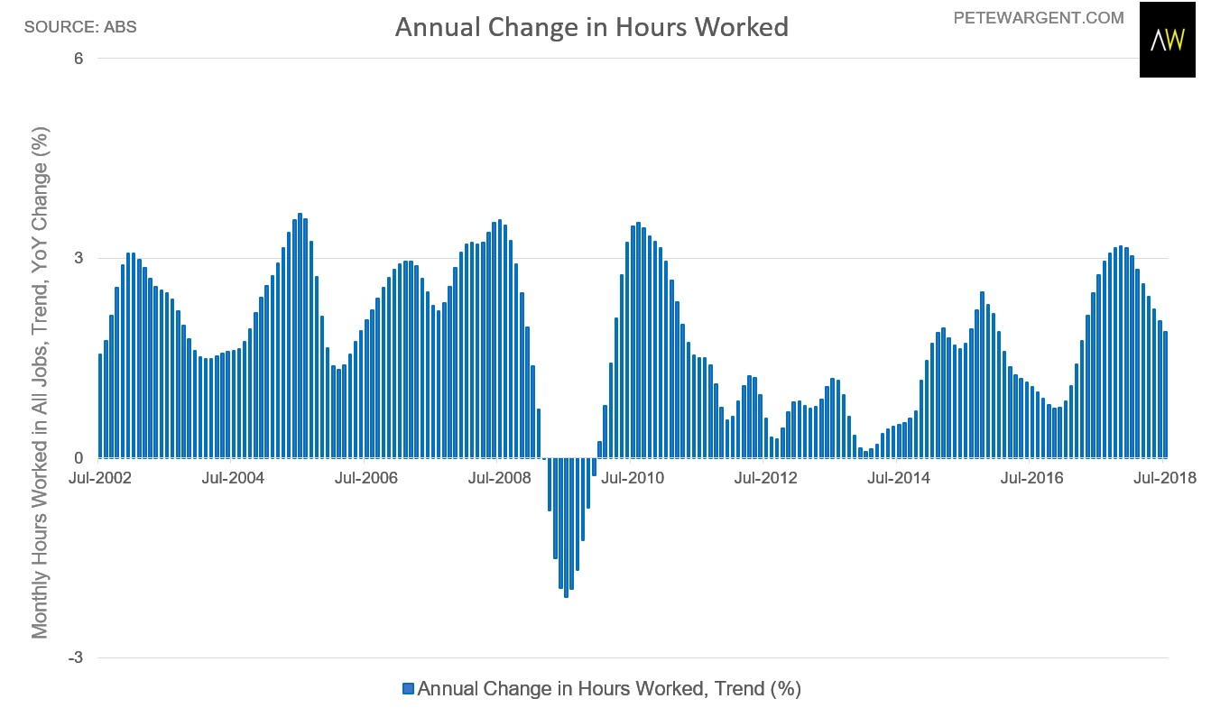 The labour force figures released this week also showed that the growth in hours worked is already on the way down.