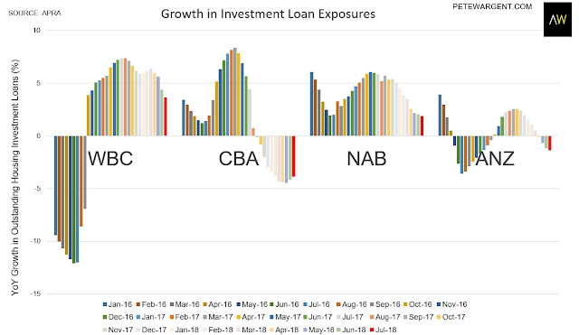 APRA's latest monthly banking statistics reported negative growth in investment loan exposures in July.