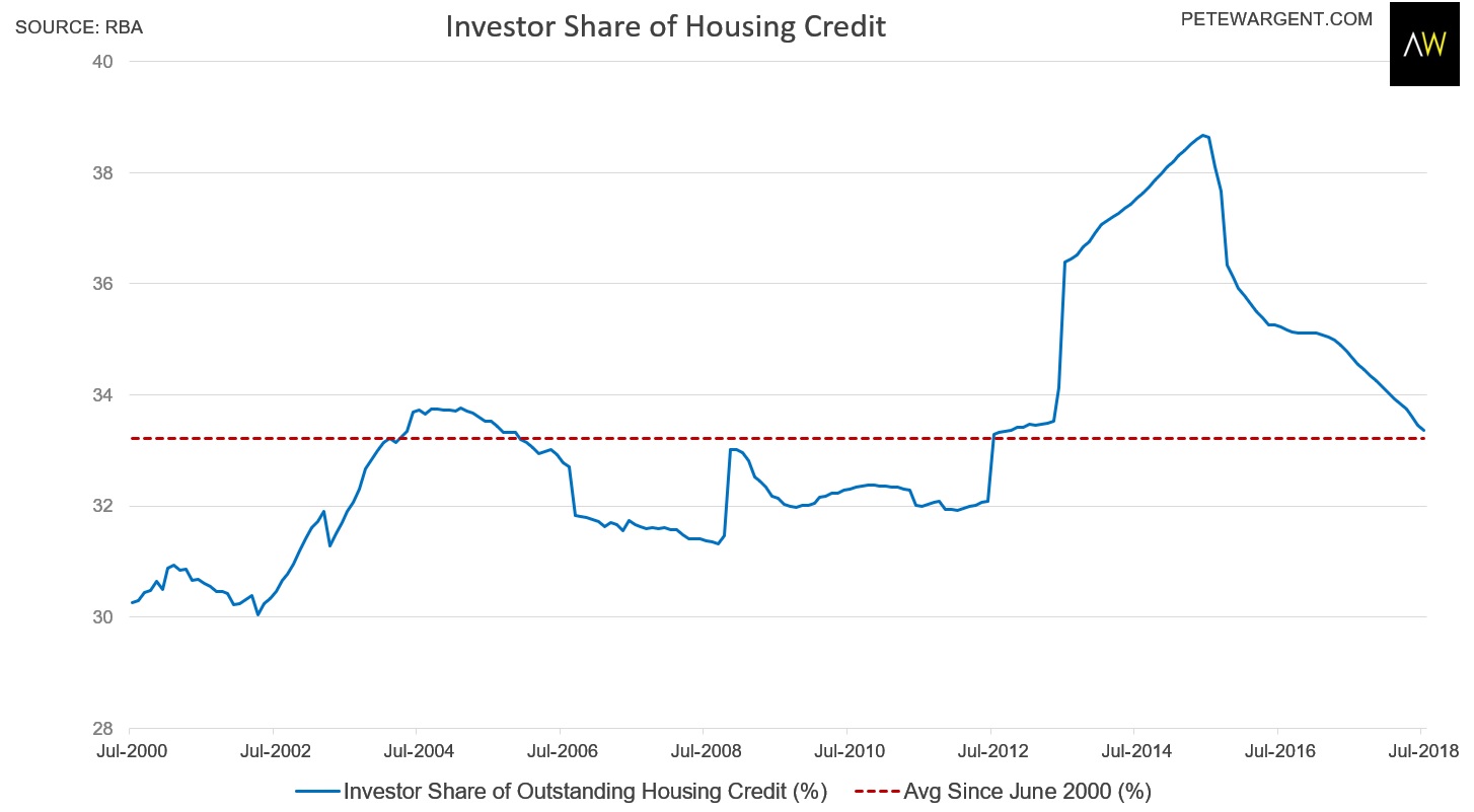 The Reserve Bank of Australia (RBA) also reported that year-on-year investor credit growth hit its lowest level on record in July 2018.