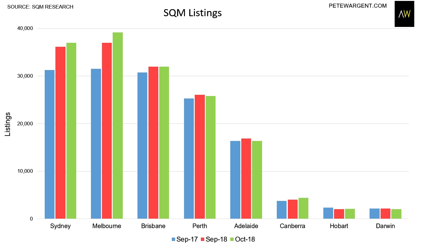 From a year earlier, Melbourne listings are up by 24.3 per cent, suggesting very slow sales activity in the Victorian capital.