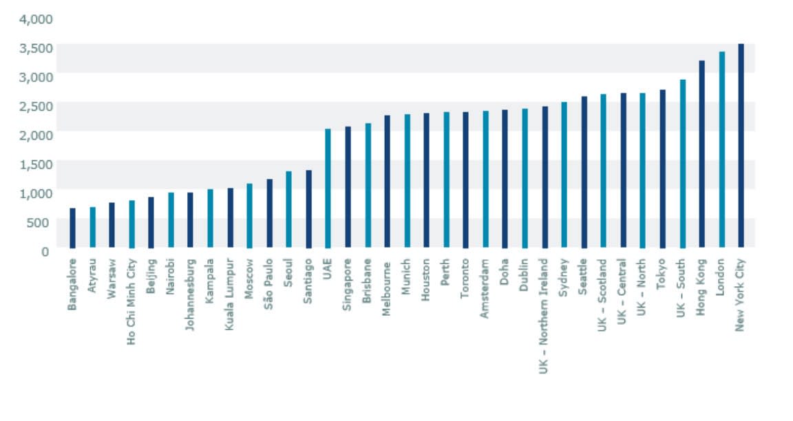 The International Construction Market Survey 2015 analyses input costs – such as labour and materials – and charts the average construction cost per m2 for both commercial and residential projects in 35 markets around the world.