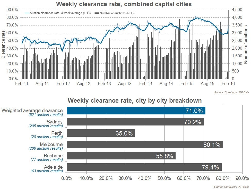 This week’s clearance rate was higher than at the same time last year (67.3%) however the clearance rate in Sydney continued to track lower than at the same time last year. All cities recorded a stronger preliminary clearance rate than what was recorded at the end of 2015, however, with auction numbers still gathering pace over February we should get a better gauge over the coming weeks as to whether the auction market is truly staging a rebound on higher clearance rates.