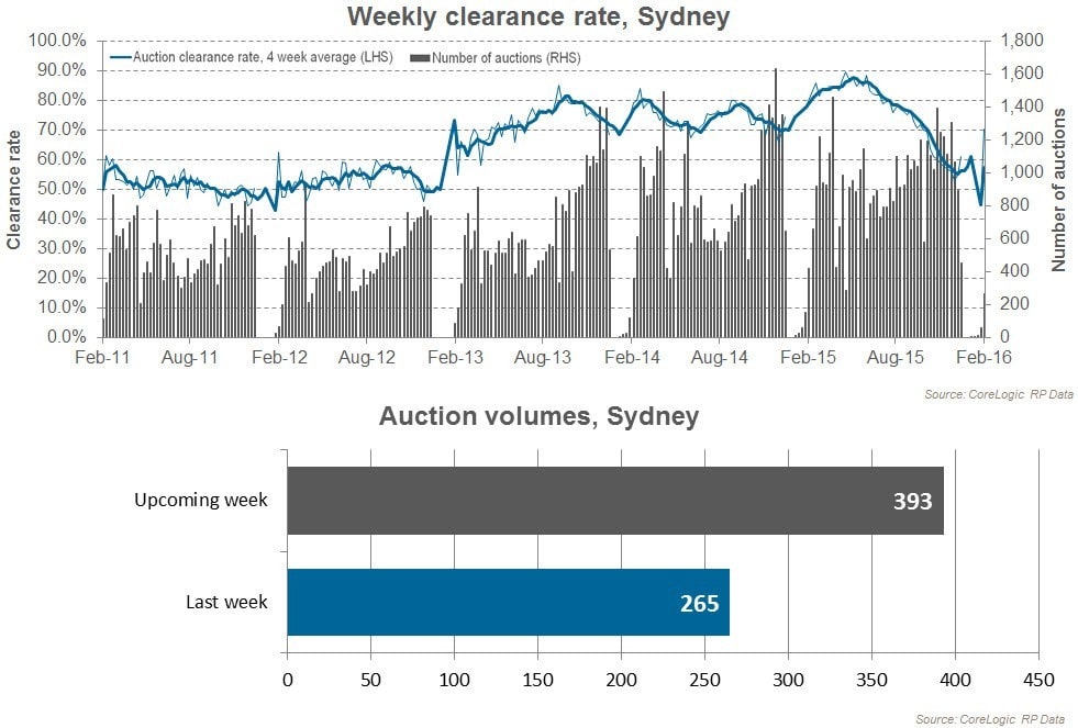 CoreLogic RP Data was tracking 854 auctions this week, compared with 987 auctions over the same week one year ago. The lower number of auctions was mostly due to a low auction numbers in Sydney where there were only 255 auctions held over the week compared with 421 at the same time last year.