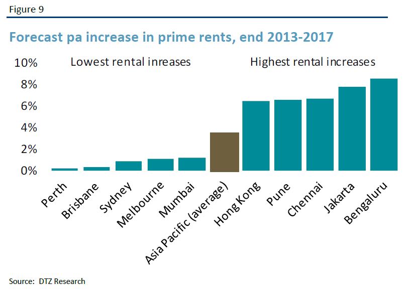 "Occupiers in Australia are expected to benefit from the weakest regional rental performance," it concluded.