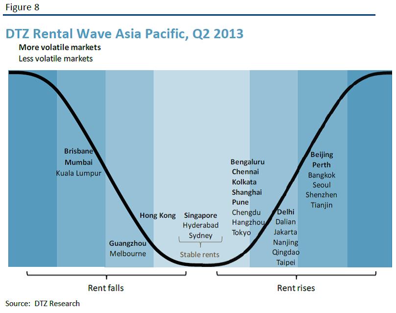 The weaker China economic growth story saw general sentiment and demand for office space in the Asia-Pacific region "cool" over the same period, with the exception of the emerging south-east Asian markets.