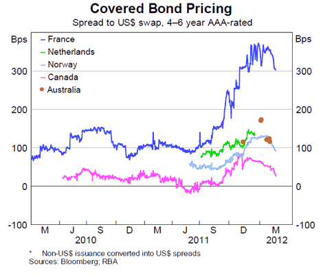 The cost of issuing residential mortgage-backed securities, another form of offshore wholesale funding, also increased over the course of 2011.