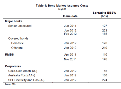 Speaking today at the Bloomberg Seminar in Sydney, Debelle says there has been “a thawing in bank debt markets” in 2012.