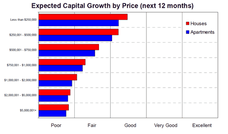 Capital growth is expected to be "good" for property under $500,000 and under $250,000, according to the survey of 300 property market participants. The higher the property price, the lower the expected capital growth, according to those who participated in the survey.