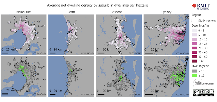 Perth has a more ambitious target for new suburban development – 26 dwellings per hectare – while Brisbane’s target for “urban” development is 30 per hectare.