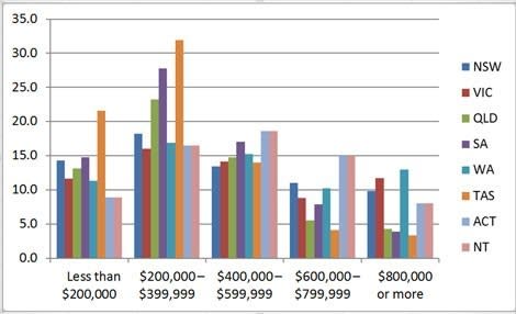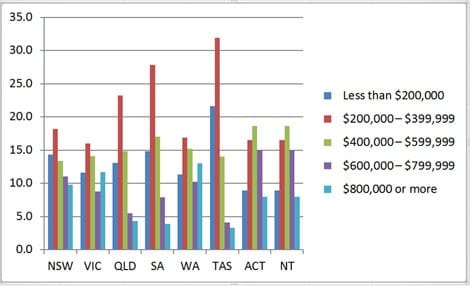 The data also shows that more Tasmanian home owners (about 32%) have between $200,000 and $399,999 equity in their homes than home owners in any other state.