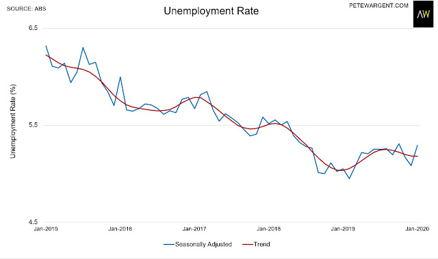 With the participation rate ticking back up a notch, the unemployment rate jumped from 5.09 per cent back up to 5.28 per cent in January, which was disappointing, if unsurprising. \