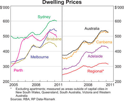 The RBA believes that in a perfect world one would use more sophisticated “regression-based” methods, such as the hedonic indices produced by RP Data-Rismark. As noted above, however, hedonic indices are complex to compute, and have intensive data requirements on the unique attributes of every individual property included in the index. In the absence of the necessary data and the considerable statistical expertise needed to estimate hedonic measures, the stratified median price benchmark appears to be the RBA’s second-best preference (see also here for a summary of the ABS’s index method). It is noteworthy that the Reserve Bank of New Zealand has recently decided to follow Richards and Prasad’s stratified median recommendations.