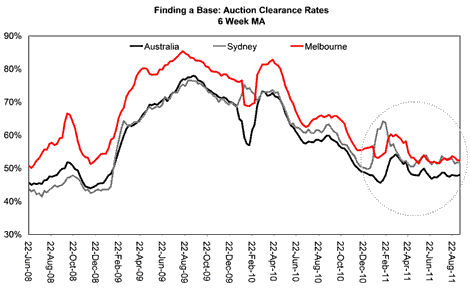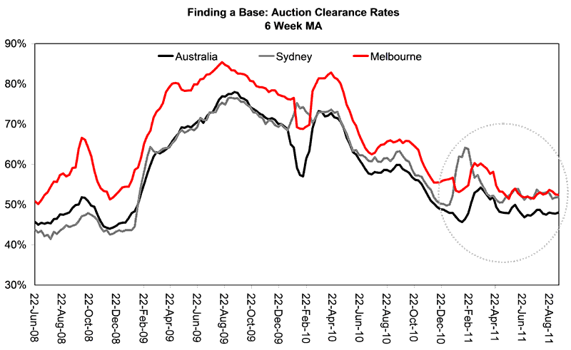 The final chart shows weekly auction clearance rates for Sydney,