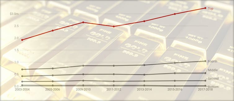 AUD millions, top quintile is the wealthiest 20% of households. ABS 6523.0